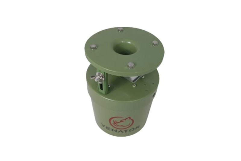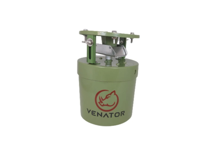 Plastový krmný automat Feed23 značky Venator s nastavitelným časováním. Konstruovaný pro rozmetání krmiva v 360°.